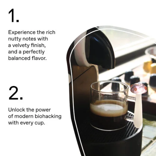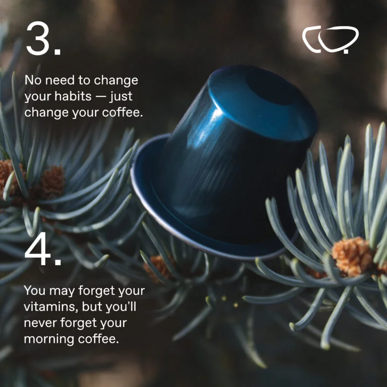 Die Pods funktionieren wie jede standardmäßige Kaffeekapsel. Kapsel einsetzen, Kaffee wie gewohnt aufbrühen. Jede Kapsel ist gleichmäßig dosiert, sodass alle fünf Adaptogene in jeder Tasse in identischer Menge enthalten sind.